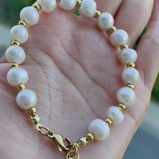• Material: Freshwater Pearls + Gold-Plated Stainless Steel